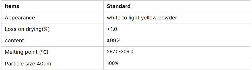 Látka je bílá krystalická pevná látka, rozpustná ve vodě a některých organických rozpouštědlech. Má poměrně vysokou tepelnou a chemickou stabilitu.